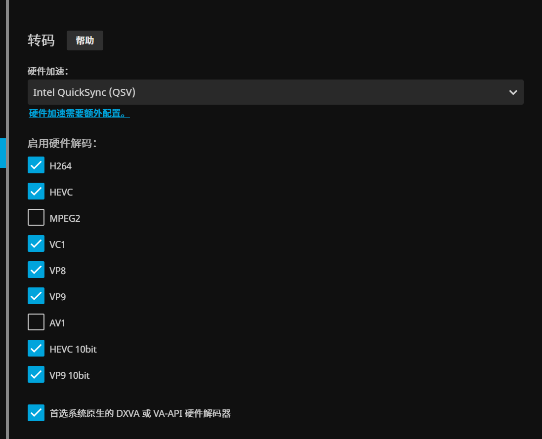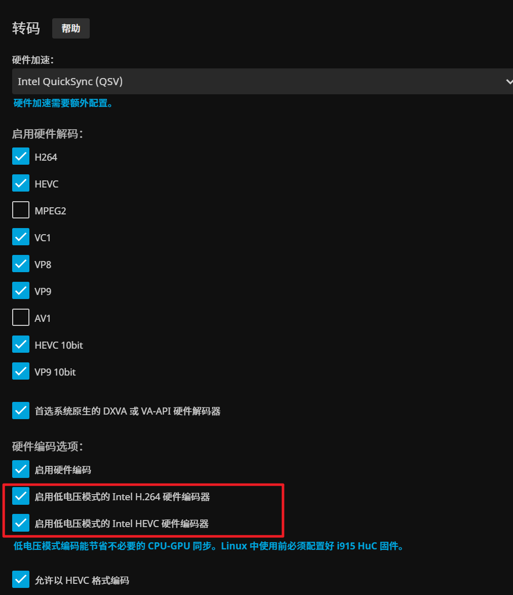 正常来说,直接到jellyfin设置打开硬解加速即可
