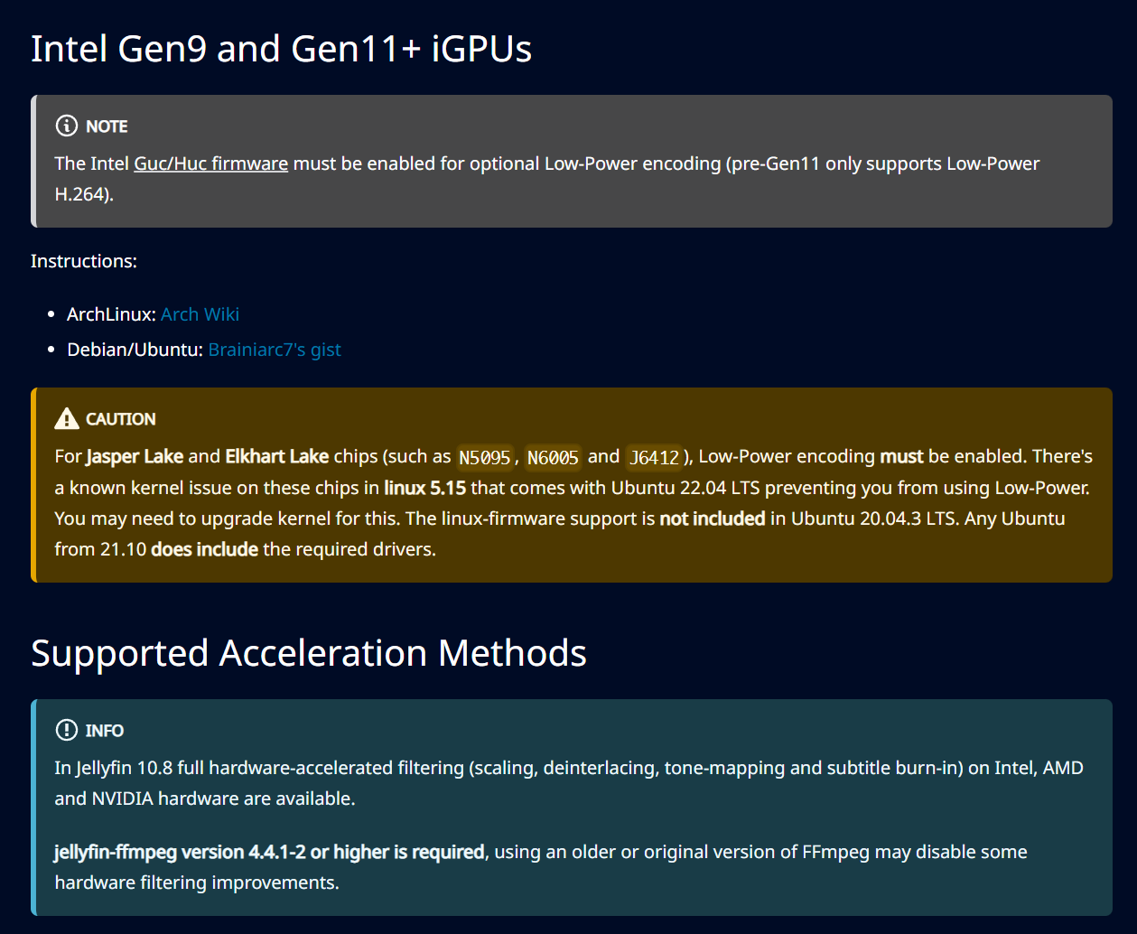 根据jellyfin官方文档,https://jellyfin.org/docs/general/administration/hardware-acceleration/#intel-gen9-and-gen11-igpus